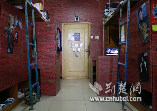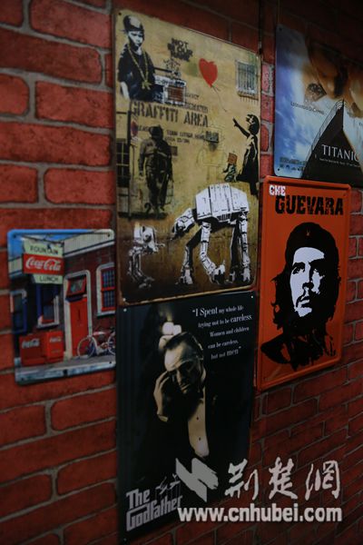为了将寝室打造成“复古影院”style,6名男生从10月下旬就开始着手构思,花费近700元完成了布置。寝室内,复古红砖墙纸布满墙壁,门楣上挂着一个复古仿真鹿头,天花板上悬着两架铁皮飞机模型,墙上贴着影院牛皮海报以及电影明信片。“我们还打算购置一台投影仪,将影片投影在墙上,再请隔壁的同学们一起,关上灯,看几部经典影片,更有影院的感觉。”该寝室的熊名扬同学说。
