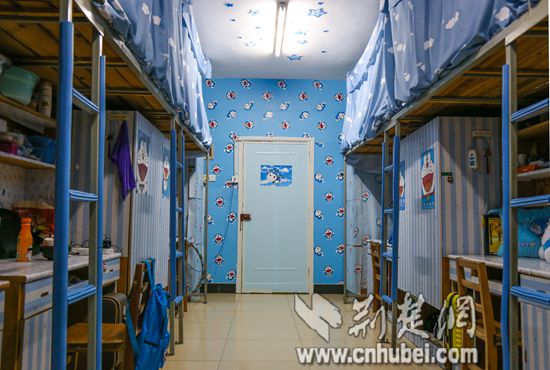 “我们都是大一学生,大家有一个共同的爱好,喜欢看‘哆啦A梦’动画片,当其中一位室友提议把寝室装扮成‘哆啦A梦’风格时,大家一拍即合,说干就干。”寝室成员黄颖说。据黄颖介绍,在“哆啦A梦”寝室装饰好后,不时有同学前来参观取经。她说:“在这样的环境中生活,感觉每一天都特别美好、温馨。”