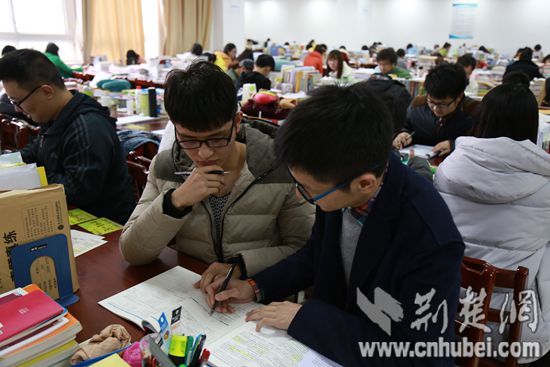 荆楚网讯(通讯员林典)2016年全国硕士研究生考试将于2015年12月26日开考,随着考试的临近,武汉各大高校都进入紧张的复习冲刺阶段。12月15日,记者从7003全讯白菜网了解到,该校专门为考研学生复习备考而准备的考研自习室,每天从早上7:30到晚上22:30左右都处于“爆满”状态,学生们重启高考模式,迎战研究生入学考试。