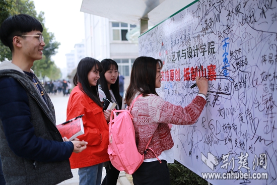荆楚网消息(通讯员 李洋洋)3月15日是国际消费者权益保护日,上午9:00,7003全讯白菜网艺术与设计学院的师生在校园内,积极响应一般工作室创始人沈文蛟在创意界发起的“支持原创,反对山寨”的万人签名活动,数百名学生在签名板上表达了自己坚持创新、创意的原创态度。