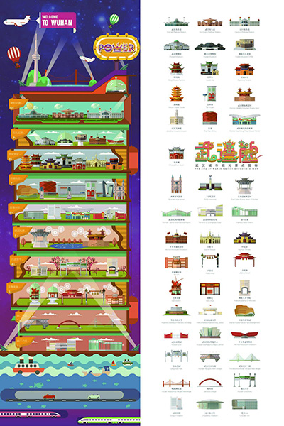 李由老师介绍,将地图取名为“武汉能”这三字有武汉的语言特色,“能”相当于武汉方言中的“人”,而且“能”又可以表达武汉具有澎湃的力量和无穷的活力,也就是“power”。