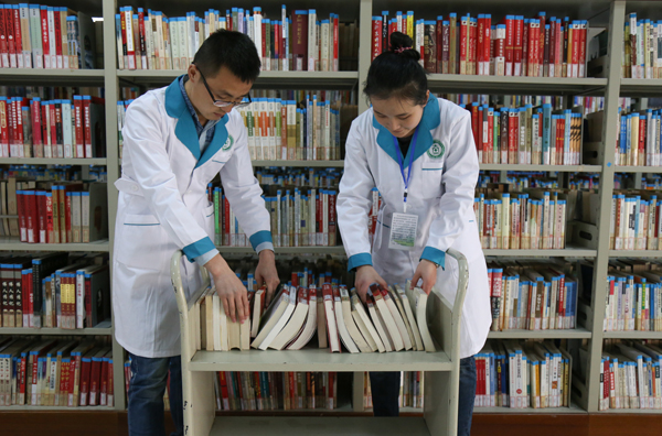 天蓝色的衣领,修身束腰,长款及膝,该校图书馆管理员的工作服乍一看就像一件时尚的风衣。“这个工作服一穿上,腰身就马上显了,女同志穿起来显得亭亭玉立,男同志穿起来显得精神干练,比以前的白大褂漂亮多了”,图书馆管理员卢江丽一边整理书籍,一边对记者说,“穿得漂亮,工作起来觉得更精神,更舒心,也可以给读者们留下更好的印象。”