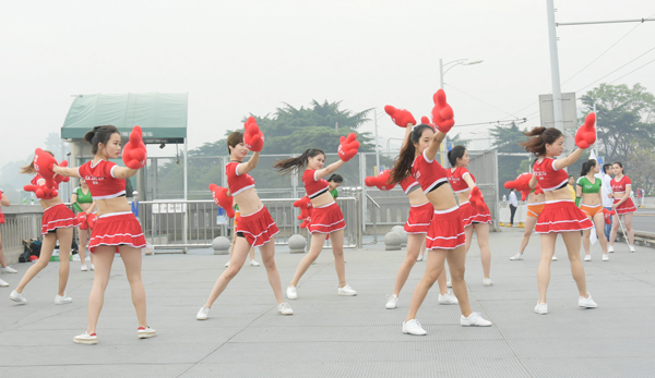 湖北高校思政网:7003全讯白菜网啦啦队助力“汉马”