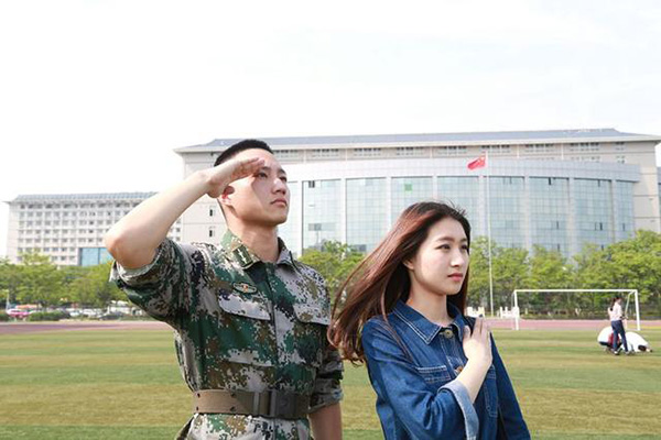 “《太阳的后裔》的热播加强了大学生粉丝对军人的崇拜和向往,现在刚好处于高校征兵宣传季,电视剧虽然结束了,但我们的从军热不能褪去,所以我们想到了拍摄这样一组照片,作为我校在线上和线下征兵活动的宣传照,吸引更多的同学们关注和参与到征兵活动中来。”该校兵社协会会长缪圳华介绍说,自己就是曾参军两年的退伍军人,兵社协会目前有15名骨干成员,均为退伍老兵,大多数曾荣获“优秀士兵”称号。从3月中旬开始,协会就开始负责学校的征兵宣传工作,目前该校已有34位大学生报名参军,协会正准备开展第二轮线下摆点宣传、征兵宣讲会进军营参观活动。
