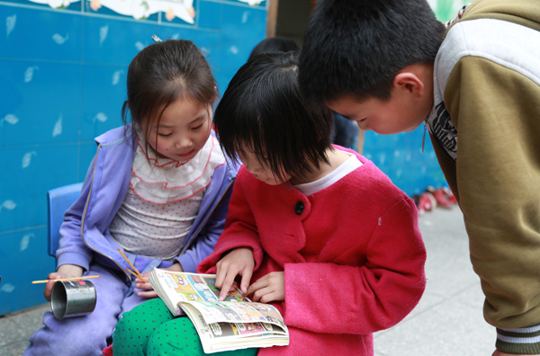 小朋友们在看志愿者带去的书籍 摄影:王晨杲