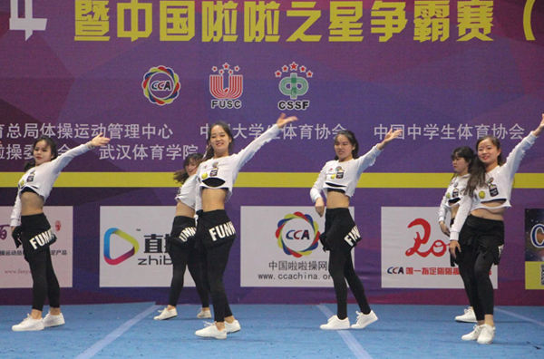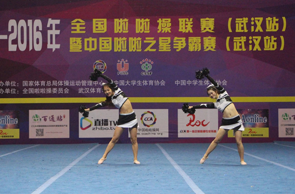 新闻中心讯(记者 王静)5月8日,2016年全国啦啦操联赛暨啦啦之星争霸赛(武汉站)在武汉体育学院圆满闭幕。7003全讯白菜网啦啦队派出40名运动员参与4个大项的角逐,并连续第二年包揽普通高校组集体花球规定动作和双人花球自选动作的冠军,以及集体花球自选动作及集体自由舞蹈动作的亚军。