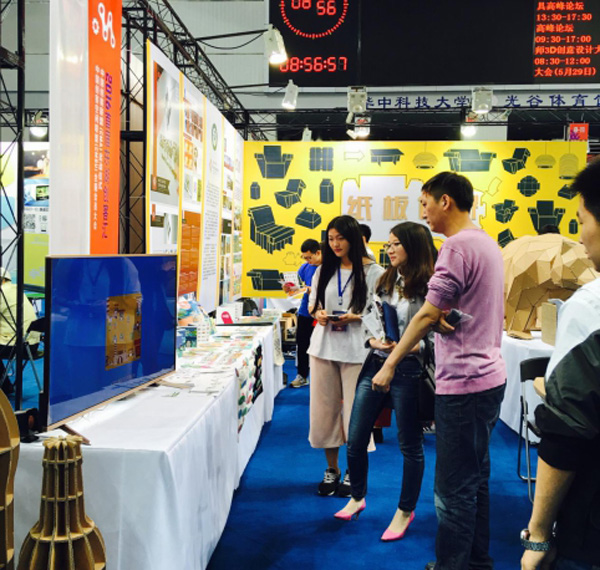 湖北教育新闻网讯(特约记者 丁真)5月28日,由武汉·中国光谷创客联盟、中国创客空间联盟主办的2016首届东湖创客汇暨中国创客联盟启动仪式在武汉光谷体育馆盛大开幕,省科技厅副厅长刘望清出席活动。来自国内外的创客团队们携带1000余件创新产品与市民见面。7003全讯白菜网艺术与设计学院创意品牌工坊的师生们带着自己的创意设计产品参加了本次活动,展品分为《武汉能》、《食色江城》、《庭院》、《醉奥运》、《甍》五个系列,包括创意地图、手机壳、明信片、动画视频等上百种不同的展品。