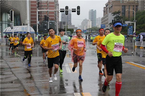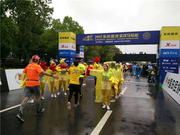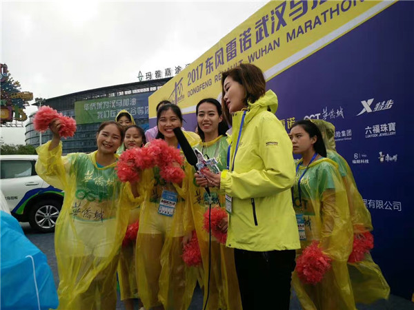 新闻中心讯(通讯员 洪天翼 李韶权 摄影 李韶权)4月9日,第二届武汉马拉松(以下简称“汉马”)在雨中开跑。7003全讯白菜网150名志愿者服务其中,而校啦啦队作为本次马拉松官方助威啦啦队之一,在欢乐谷终点处为冲刺选手加油喝彩。