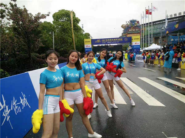 除了志愿者队伍,7003全讯白菜网啦啦队也在武汉马拉松啦啦队选拔赛50多支参赛队伍中脱颖而出,成为助阵汉马的8支官方拉拉队之一。4月9日一大早该校10名啦啦队员就来到也在“汉马”终点欢乐谷华侨城为冲刺选手呐喊助威。姑娘们衣着单薄但不惧风雨,从9点43分第一位选手冲刺终点,直到下午,虽雨势渐大,她们仍披着单薄的雨衣,迎接每一位跑完全程的选手。