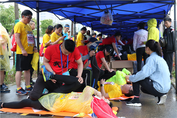 “站在‘汉马’的终点,见证了许多跑者的成功,不仅有比赛的冠军,还有推着孩子跑完全程的奶爸和带着宠物走向终点的姑娘,他们的奔跑精神让我感动,这些记忆都弥足珍贵。”队员王晴婷说,“在雨中坚守岗位的志愿者、裁判员以及各类工作人员都让我心生敬佩,能和大家一起参与这次活动,我很开心!”