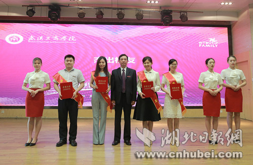 原湖北省副省长刘友凡为巴能军等颁发建校突出贡献奖。通讯员 林典 摄