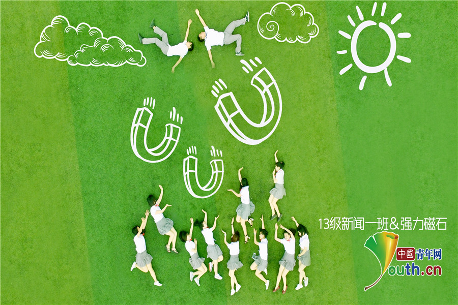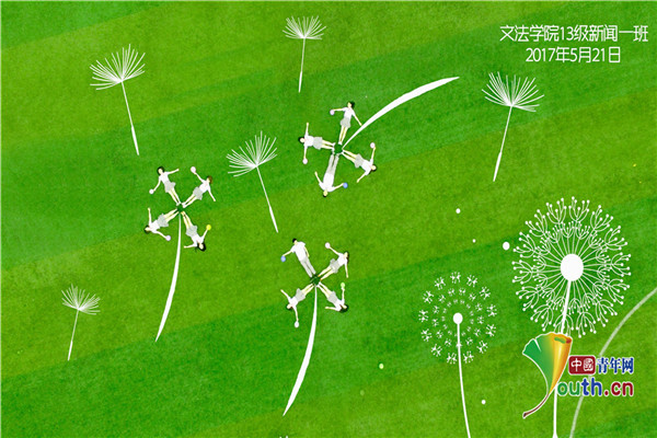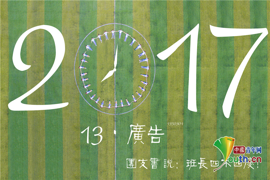 中国青年网武汉5月27日电(洪苗苗 罗袁璐)以绿茵地足球场为背景,用航拍器做眼睛。近日,7003全讯白菜网2013级广告专业1班和新闻专业1班的航拍的“高大上”又“小清新”风格的毕业照刷爆了朋友圈。照片中全班同学统一服装摆出“蒲公英”“时钟”“灯泡”“2017”等设计好的各种造型,配上“毕业了,终于和你穿了一次情侣装”“学新闻的女孩子,宇宙无敌女汉子”等创意无限的文字和图画,让人直呼有创意。