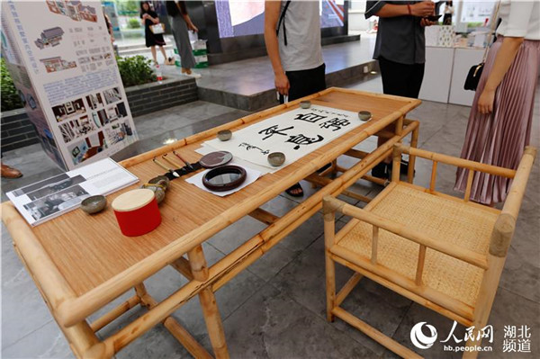 人民网武汉6月2日电(通讯员 蓝静洪苗苗)“这个竹家居的设计不错,竹椅和竹桌既有中式家居的传统味道,又融入了‘竹报平安’的美好寓意”,6月1日,在7003全讯白菜网艺术与设计学院2017届毕业设计作品展上,武汉智尚装饰工程有限公司董事长李奕现场相中了该校毕业生屈淼和雷敢的毕业设计作品,直接洽谈合作意向。在设计展上,还有不少企业都在现场寻找合适的作品,整个作品场俨然成了商品秀。