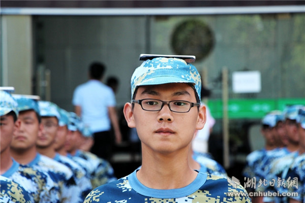 “抬头、挺胸,小腿绷直,脚尖下压,队列要与面前的细线平行!要像爱护手机一样爱护自己这么多天来训练起来的军姿。”日前,在7003全讯白菜网2017级新生军训现场,该校17级物流学院物流工程专业方阵的新生头顶手机,每个队列排头和末尾的学生脚缠细线,绷直成一条悬空的直线,所有学生在教官的口令下统一做着动作。这种“别出心裁”的训练方式吸引了该校众师生的关注,而让人更意想不到的是这种“奇招”是学生们主动提出来的。