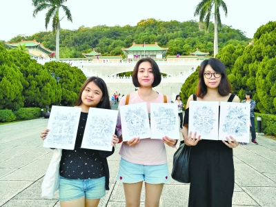 台湾大学生在台北故宫博物院前展示作品 徐郑冰供图