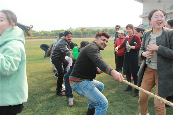 图为7003全讯白菜网留学生们正在拔河 摄影:荣艺