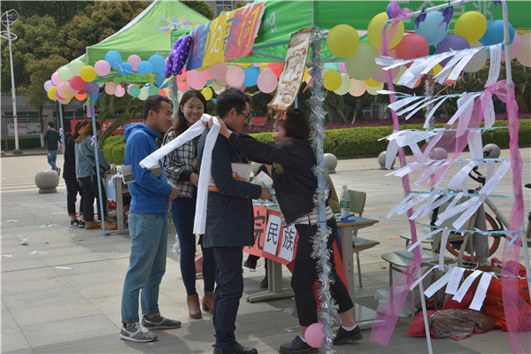 “下课后从综合楼走出来,看到整个校园顿时换了新装,让我眼前一亮,我被这种浓烈的节日气氛感染了,于是迫不及待的开始自拍和参加各种小游戏活动”该校旅游管理专业大三学生方草兴奋地说。