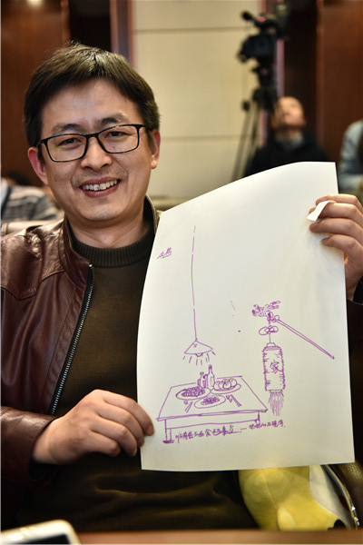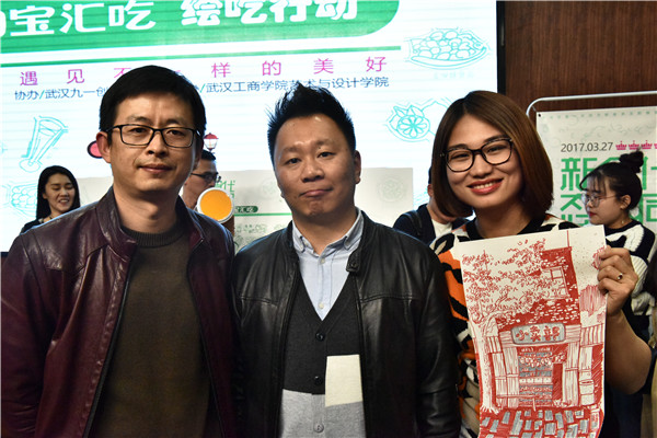 在互动环节,主持人请嘉宾老师们画出自己记忆中的美食,该校艺术学院常务副院长王海文画了一副记忆中的奶奶的火烧肉并配文道:唯有爱与美食不可辜负。“从王院长和楠希小馆店主身上我学到了把美食进行艺术文化处理,会让它更有内涵,也更有市场。”艺术与设计学院16级学生熊泽雨说。14级艺术与设计专业学生刘珺颍也感叹道:“参加这次活动,听到了那么多美食家和优秀设计师的丰富经验,让自己对美食的艺术包装有了更深刻的简介,在美学、视觉设计上也有了更多理解。”