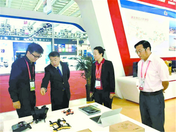 夏天玺(左一)在2017年东北亚博览会上参展