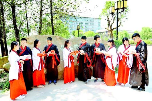 4月12日下午,一场“戊戌年开科取士考试大典”在该校外语艺术楼中庭举行。来自该校国学社、法学系读书会的同学们身着古代服装,体验了一把古代“科举考试”。“在准备考试的过程中,我能切身感觉到科举考试对文字功底、文史哲知识、时政思考能力,甚至书法水平等都有很高的要求。”郭嘉威说,学校的国学社会不定期举行茶艺展演、书画雅集、国学知识竞赛、汉服走秀等一系列国学活动,大家能够在实际体验中感悟国学文化的魅力。