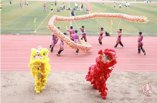 “穿越、腾跃、游龙、 翻滚、跳跃 ……”在操场的另一边,学校龙狮队的教练周龙正指导着翻滚着的“游龙”进行动作的衔接。他介绍,此次龙狮队将在龙舟文化节上进行开场演出,将展示“龙舟”“五角星”“曲线”“立龙”等多种造型。“作为中国传统文化活动,龙狮表演展示了中国龙文化的内涵,龙狮技艺不仅对力量、速度、弹跳等有要求,而且对造型也很有讲究,这也是训练的难度所在”,周龙介绍。