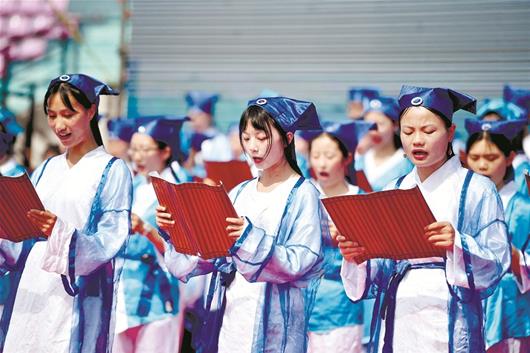 图为:百名学子诵读《黄家湖赋》和《楚辞·九章·涉江》