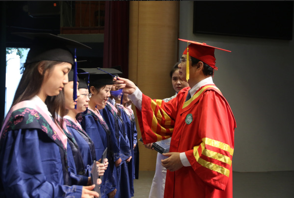 中南民族大学校长李金林为毕业生拨穗(通讯员郭亚博摄)
