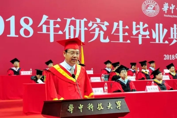 丁烈云在致辞中说,他希望同学们立鸿鹄志、做奋斗者,做让人民生活更加美好的答卷人。他提醒学子:能进华科,你们是赢家,但漫漫人生路不是都能这般大吉大利今晚吃鸡,还可能随时落地成盒。