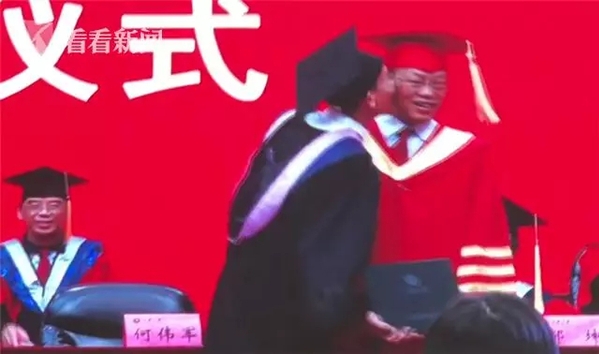 6月22日,三峡大学2018毕业典礼上突发“意外”。一名男同学当众亲吻校长的脸颊,作为最后的告别。同学,你的大学圆满啦!