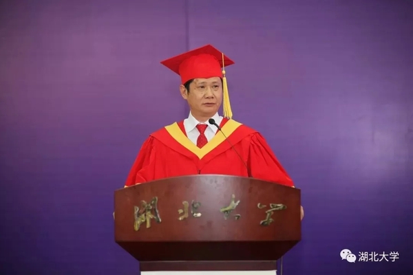 6月21日,在湖北大学毕业典礼上,校长赵凌云教授寄语毕业生:扛起责任出发,肩负使命起航,奋力谱写新的人生华章。