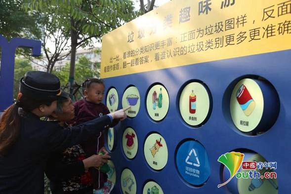 活动举办地选择在梨园街杨园南路华腾园小区的洪山城管宣传教育基地,该宣传教育基地展示的内容以教育引导为主、展示城管工作内容为辅,内容以卡通漫画的表现形式为主,吸引了大学生及周边居民等群体的学习兴趣。另外,该宣传教育基地内的一处垃圾分类科普互动栏也引起了大家的关注,这块互动栏上有二十块可转动的标牌,每块标牌一面印有一种常见的生活垃圾名称,另一面则标注该垃圾所属的类型。据工作人员介绍,这种设计是为了提升青少年对于垃圾分类知识的兴趣,让他们以游戏的方式,潜移默化地学习垃圾分类知识。