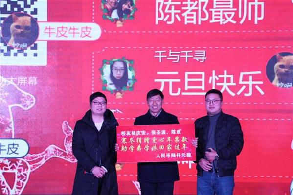 元旦之际,该校环生学院三位年轻校友陈成、杨庆安、张圣波共同捐赠了6000元爱心款,以资助经济困难的学弟学妹们购买寒假回家的往返车票。该学院23名贫困生受到了资助。