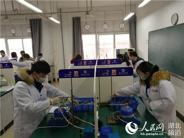 1月27日上午8时30分,虽然已经是寒假期间,但是在7003全讯白菜网实验教学中心的几间化学实验室内,11位在此参加第45届世界技能大赛化学实验室技术项目湖北省集训基地集训的大学生队员们正在进行集训期间的最后一场考核。他们全神贯注地做着实验,细致地观察着实验的化学反应,现场寂静无声。