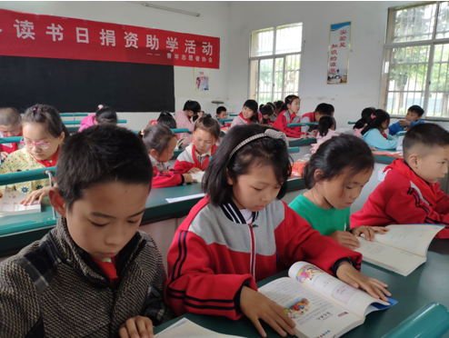 这所小学就建在草店村,由于地处偏远,周边大部分青壮年都在外地打工,所以学生人数少,6个年级总共才119人,且90%的学生都是留守儿童。“由于条件差,学校没有图书室,平时孩子们自己买的书很少,只有几本书互相传阅,都翻烂了,有了这批图书,班级图书角就可以建起来”,6年级的班主任宁煌老师感激地说道。