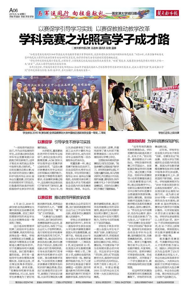 “一进校老师就告诉我们,作为应用型高校的学生,必须通过参加各类学科专业竞赛来提升实践能力和创新能力,这样才能在未来的就业竞争中发挥优势占据先机。”目前在腾讯总部从事AI技术研究的该校计算机科学与技术专业2012届毕业生董美豪,回忆起本科在校期间学习的经历,印象最深的就是学校积极鼓励学生参加学科竞赛的做法。