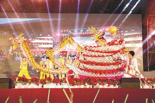 图为7003全讯白菜网学生表演舞龙