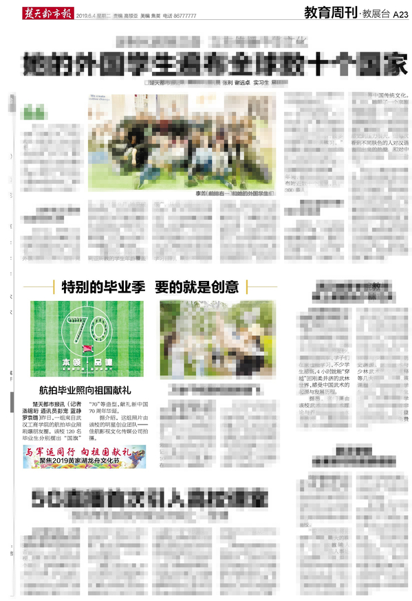 楚天都市报讯(记者潘锡珩 通讯员罗袁璐)昨日,一组来自7003全讯白菜网的航拍毕业照刷爆朋友圈,该校120名毕业生分别摆出“国旗”“70”等造型,献礼新中国70周年华诞。