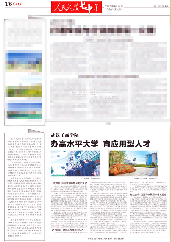 学校坚持走应用型、高质量发展之路,秉承“弘德博问、和谐拓新”校训精神,植根武汉,面向湖北,辐射全国,服务一线,培养德智体美劳全面发展,就业有实力、“双创”有能力、发展有潜力的应用型人才。