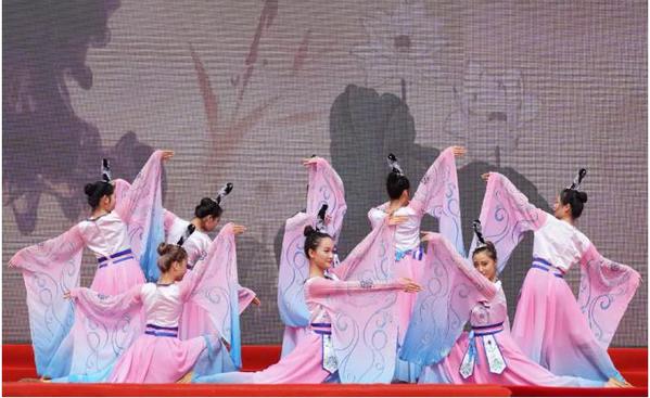开幕式上,学子们通过生动的演绎向传统文化致敬。龙狮表演中,该校外籍教师和国际交换生组成一支独特的队伍,让中华传统文化走向世界。古典舞《在水一方》,塑造了行走在水边的江南女子的艺术形象,舞姿尽显女性妩媚柔婉、轻盈曼妙之态。