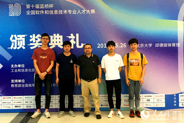 图为在第十届“蓝桥杯”全国软件和信息技术专业人才大赛全国总决赛中获奖的学生与指导老师合影