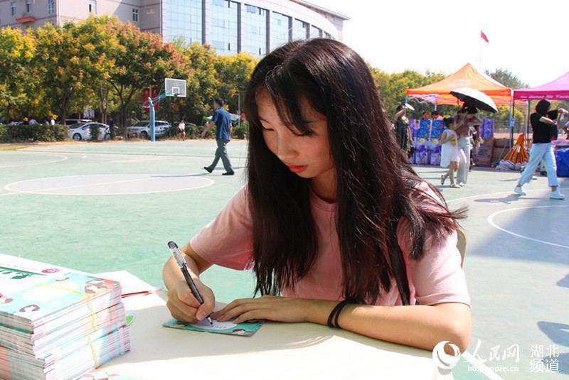 新生入学在明信片上写下对未来的期望 摄影:谢晓霜