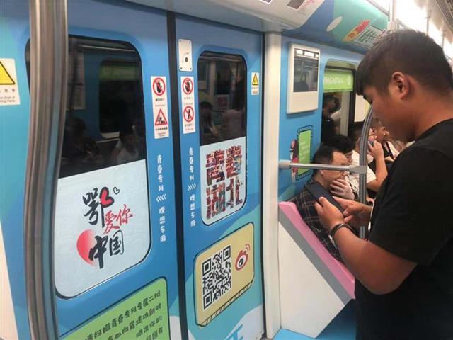 快到本趟专列终点站金银潭站,26岁的快递小哥余志站在门前等候下车,他扫描门上二维码,上传发送#青春心向党建功新时代#话题微博并@青春湖北,笑着说,刚在标语“上了团团的车就是年轻人”前拍照“打卡”,参与网上话题互动,希望能被抽中获得城市公交卡“武汉通”青春纪念版呢。