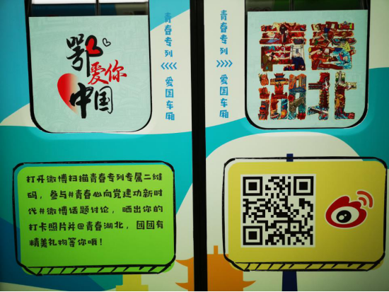来自华中师范大学岳鸿宇在专列上还发现了一个小秘密,“刚刚扫描了车厢上的二维码,就发送了一条#青春心向党建功新时代#话题的微博,还可以抽奖呢。”市民朋友在乘坐专列时,可以拍照打卡,发布#青春心向党建功新时代#话题的微博并@青春湖北,就有机会获得“鄂爱你,中国”青春纪念版武汉通、湖小青公仔等大礼包。