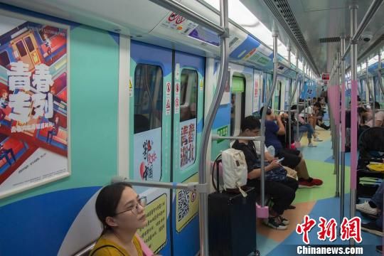 图为主题地铁内色彩活泼、青春活力 李麒麟摄