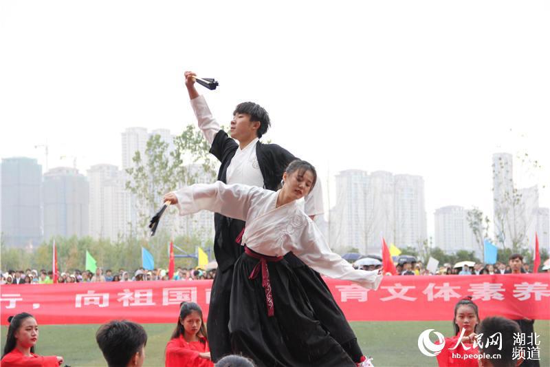 图为大学生艺术团方阵特色表演 摄影:冯哲昊