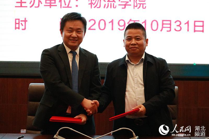 图为物流学院常务副院长王勇与顺丰湖北区副总裁签订深化人才合作协议 摄影:叶炫志