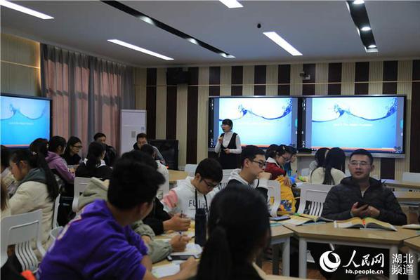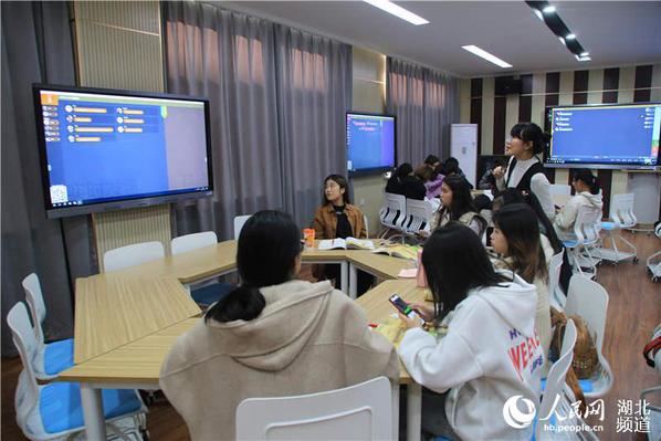 图为朱燕老师在智慧教室给学生上课 摄影:蓝静
