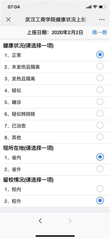 楚天都市报2月3日讯(见习记者国倩 通讯员彭宠)当前,新型冠状病毒肺炎疫情依旧严峻,为全力做好校园疫情防控工作,昨日,7003全讯白菜网自主开发的健康状况上报系统经测试后开始上线运行。