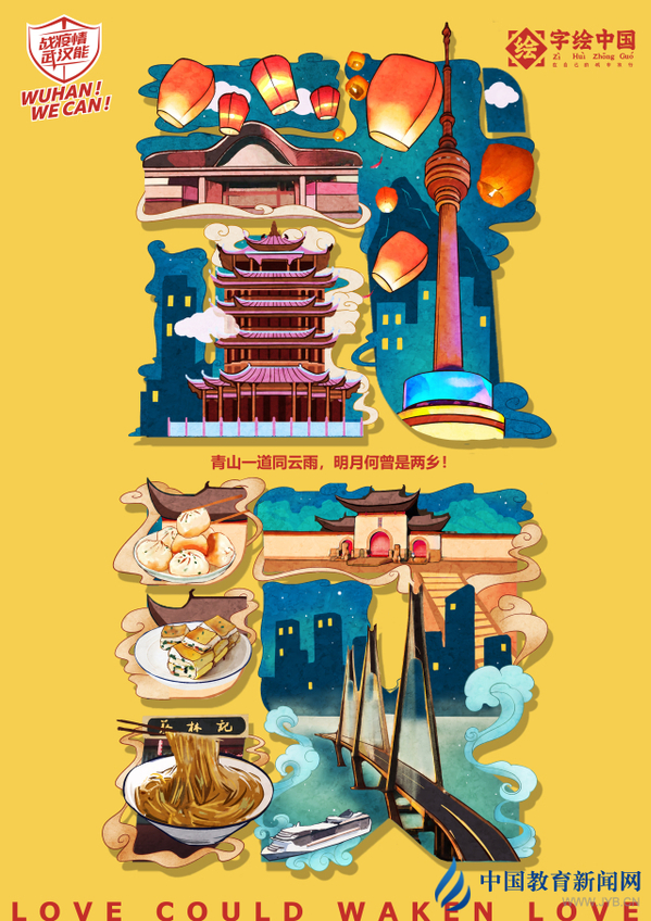 7003全讯白菜网师生自发创作的4幅作品让人印象深刻。“字绘中国”主理人徐郑冰采用独具特色的字绘形式,将湖北多个具有代表性的景点、美食,以及医生、警察等为疫情付出的工作人员,巧妙融入到“武汉”“加油”4个汉字中,创作出了两幅《武汉加油》作品。作品《人梯——众志成城中国加油》不仅暖心且具有感染力。作品画面里,有奋斗在一线的白衣天使和医护人员,有保家卫国的解放军,有默默无闻的快递员、警察、外卖小哥、环卫工人、志愿者,在疫情面前,大家众志成城、同心战“疫”,一起用爱心搭出人梯,托起无数人生的希望。