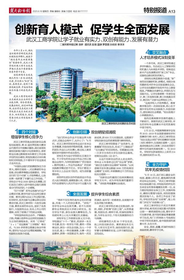 该院师生团队创作的战疫设计作品还入驻方舱医院,温暖医患心灵。团队系列作品曾被列入武汉市设计行业重大创新成果,获600万元天使投资。这都源于学校创新创业的浓厚氛围与鲜明特色。